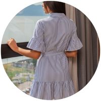 Detalhes que elevam O Vestido Lia possui gola camisa, manga godê e botões frontais que reforçam seu charme moderno. A fita de amarrar marca a cintura e a barra godê traz fluidez. Confeccionado em fio tinto, mantendo as cores do tecido vibrantes por mais tempo. | ![]() |