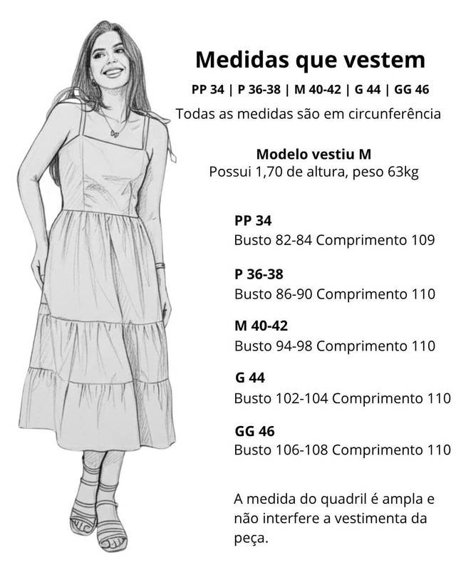 ![]() | Detalhes que constroem Athenas breezy dress midi com camadas franzidas e presença marcante. Alças em laços que trazem delicadeza ao visual. Versátil, combina com tênis, rasteiras e produções casuais. |