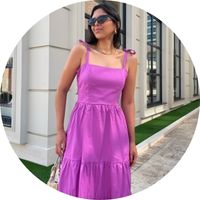 ![]() | Detalhes que constroem Athenas breezy dress midi com camadas franzidas e presença marcante. Alças em laços que trazem delicadeza ao visual. Versátil, combina com tênis, rasteiras e produções casuais. |